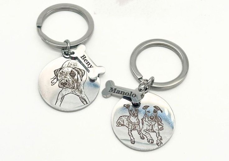 پلاک پت عکس دار استیل با آویز استخوان حکاکیشده