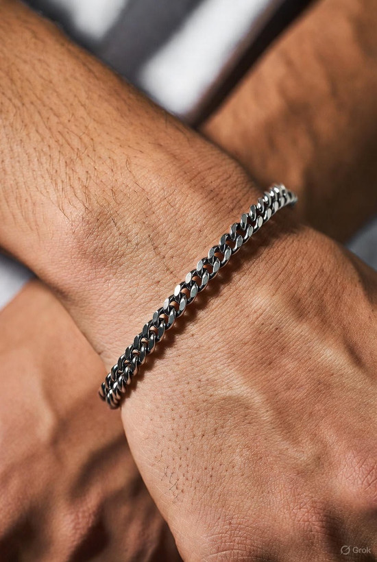 • ضخامت مناسب: این دستبند، ضخامتی متعادل دارد که هم حس مردانه و سنگین بودن را منتقل میکند و هم برای استفاده روزمره کاملاً راحت است.