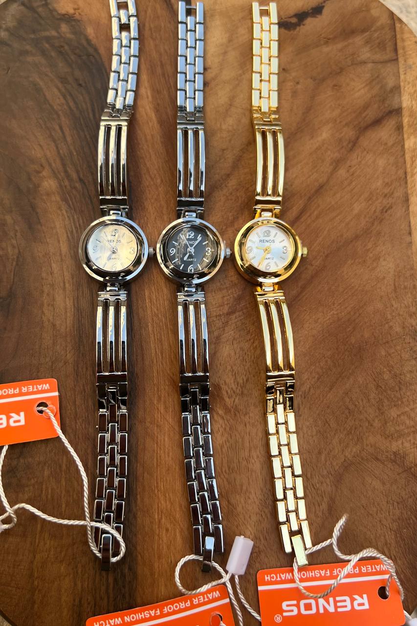 ساعت مچی Renos با بند فلزی ضد زنگ و صفحه گرد کلاسیک، انتخابی ایدهآل برای خانمها با استایل روزمره یا رسمی است. طراحی ساده و شیک، عقربههای واضح و بدنه با کیفیت اقتصادی باعث شده تا هم برای هدیه و هم استفاده شخصی گزینهای جذاب باشد. این ساعت ارزانقیمت، با دوام و مدرن، بهترین ترکیب استایل و قیمت مناسب را به شما ارائه میدهد