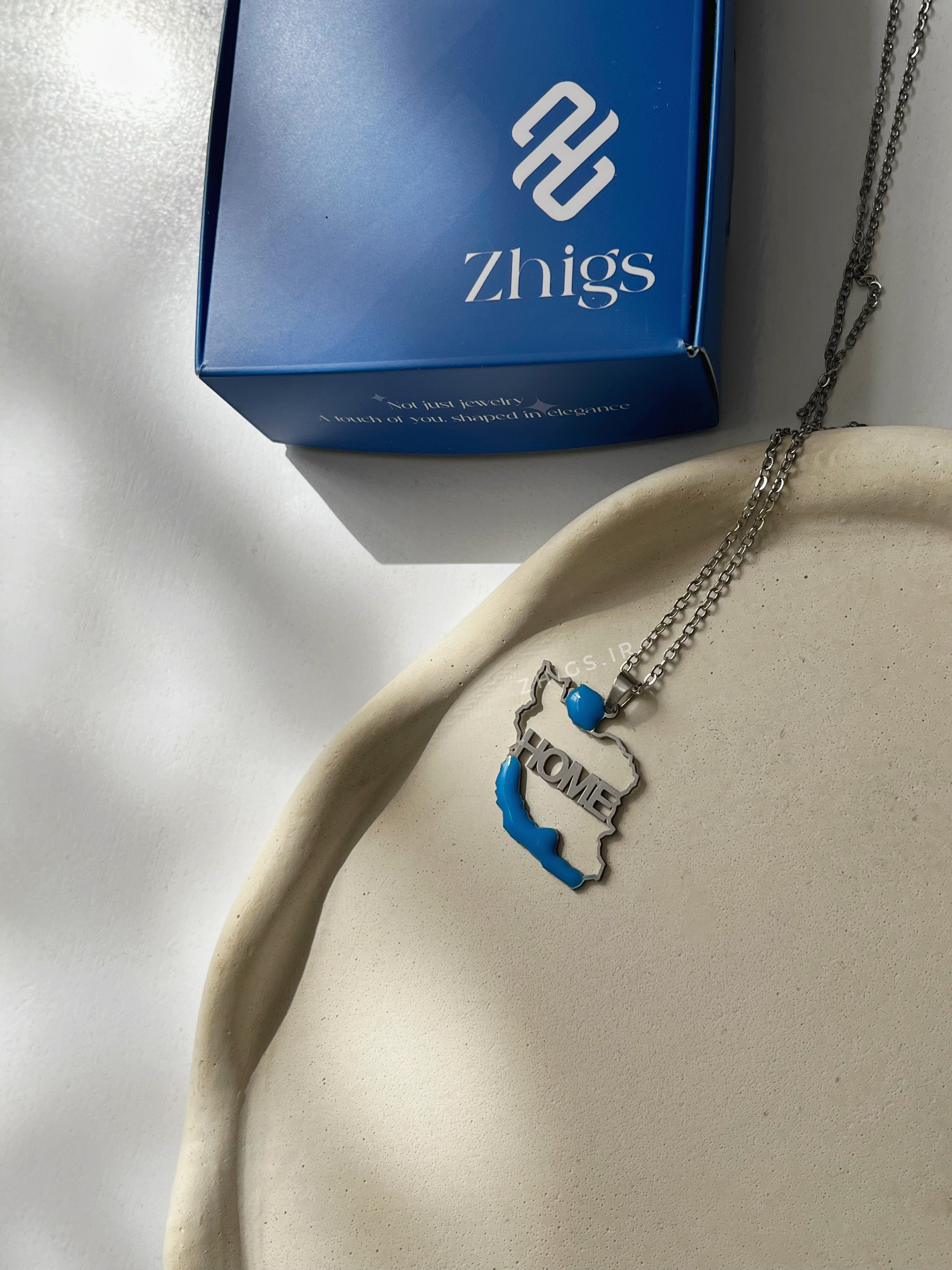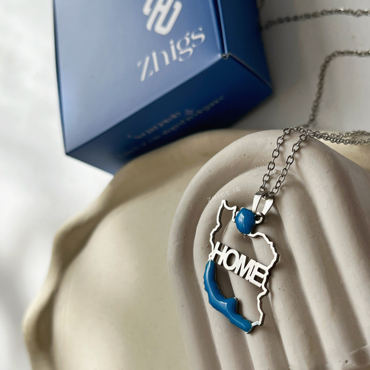 🌟 گردنبند طلایی نقشه ایران با میناکاری دریایی
