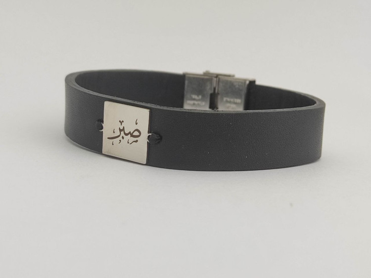 دستبند چرم طبیعی و پلاک استیل
