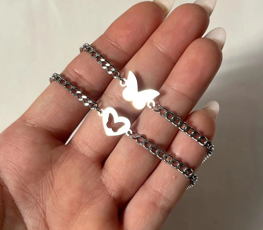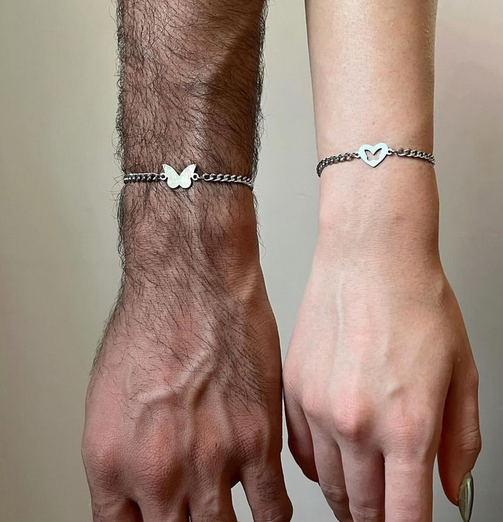 دستبند پروانه سایز مردونه و دستبند قلب و پروانه سایز زنانه ارسال میشود