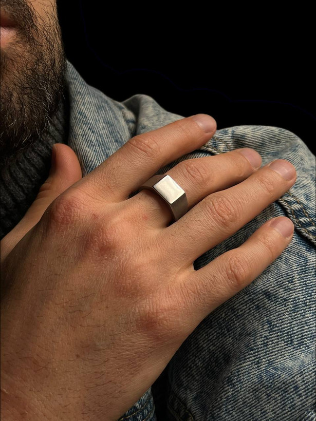 انگشتر مردانه کلاسیک مربع با قابلیت حک دلخواه