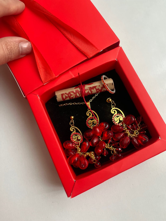 **جعبه هدیه خاص روز زن و شب یلدا - شامل فال حافظ و زیورآلات انار**