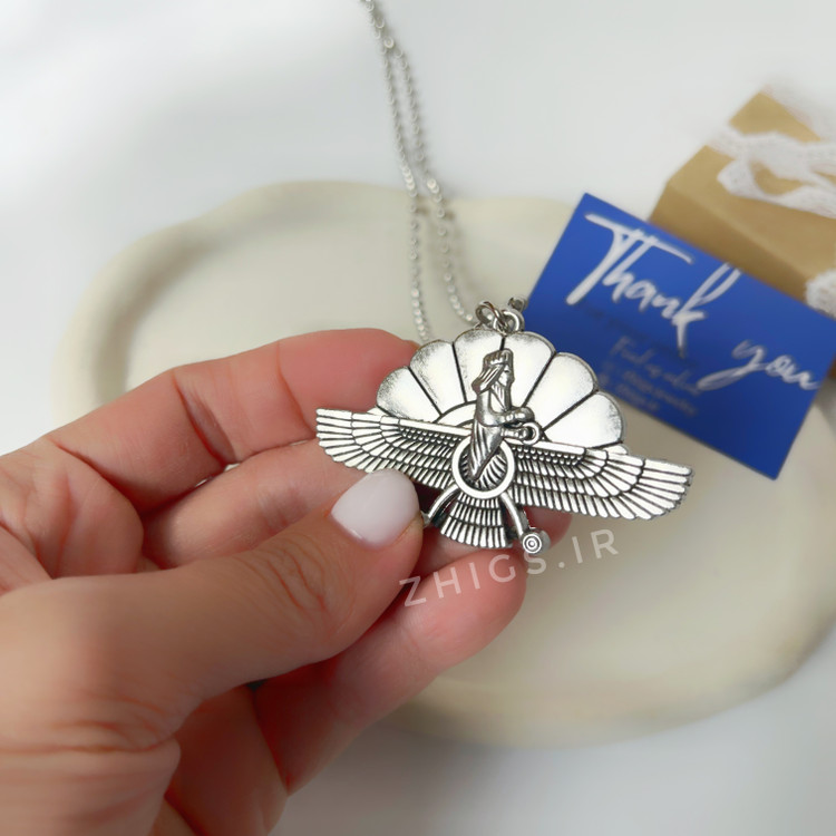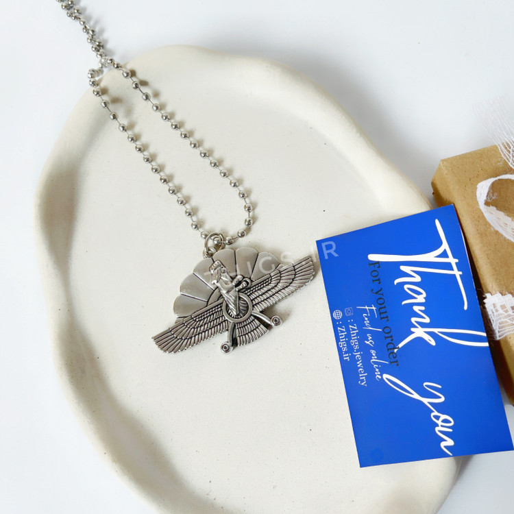 فروهر در واقع نمادی از روح انسانی است که به زندگی پس از مرگ اشاره دارد و نشاندهنده دورانی است که روح در مسیر کمال و پاکی حرکت میکند. طراحی این گردنبند معمولاً شامل یک بال و یک دایره است که نماد پرواز روح و اتصال به عالم الهی را نشان میدهد.