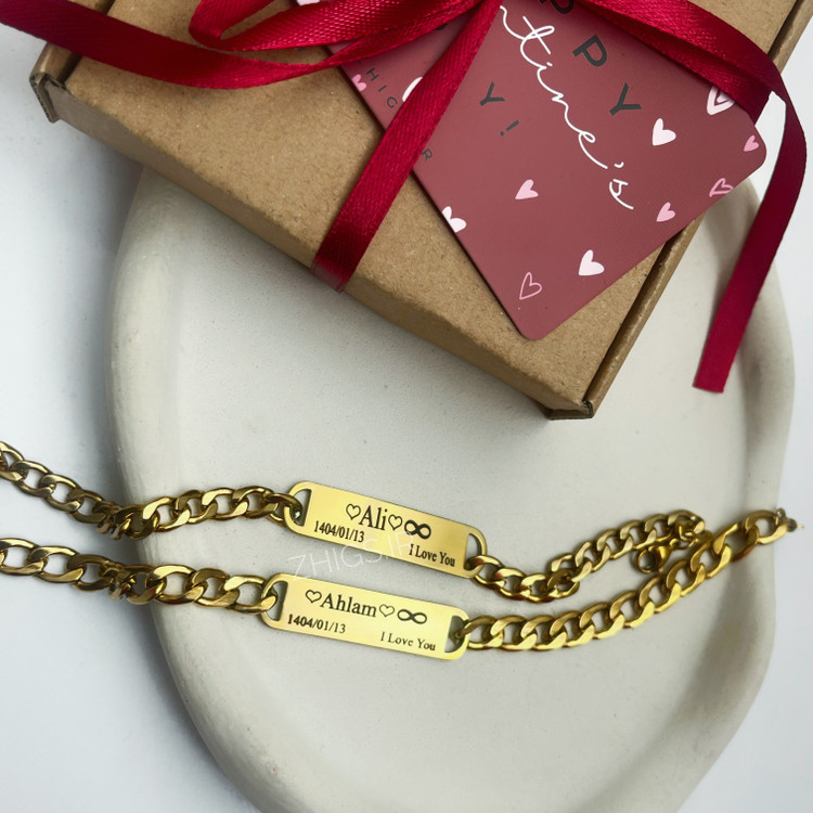 ست کاپلی دستبند کارتیه با حک متن دلخواه