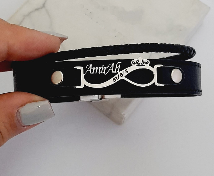 دستبند مردانه چرم با پلاک بینهایت: هدیهای بیپایان برای لحظات خاص شما