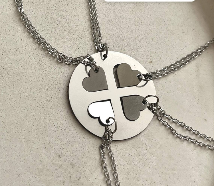 گردنبند “پنج قلبِ یکی”، نمادی از پیوند عمیق و ناگسستنی بین پنج نفر است. این ست پنجتایی گردنبند، شامل پنج آویز قلبی استیل است که هر کدام به تنهایی زیبا هستند، اما در کنار هم یک قلب کامل را تشکیل میدهند.