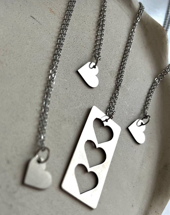 گردنبند “تپشهای یک قلب”، پیوندی ناگسستنی از چهار قلب در یک ست بینظیر. این مجموعه شامل چهار آویز قلبی استیل است که هر کدام به تنهایی زیبا و با ظرافت طراحی شدهاند، اما وقتی در کنار هم قرار میگیرند، یک قلب کامل را تشکیل میدهند – نمادی از اتحاد، عشق و پیوند عمیق بین چهار نفر خاص.
