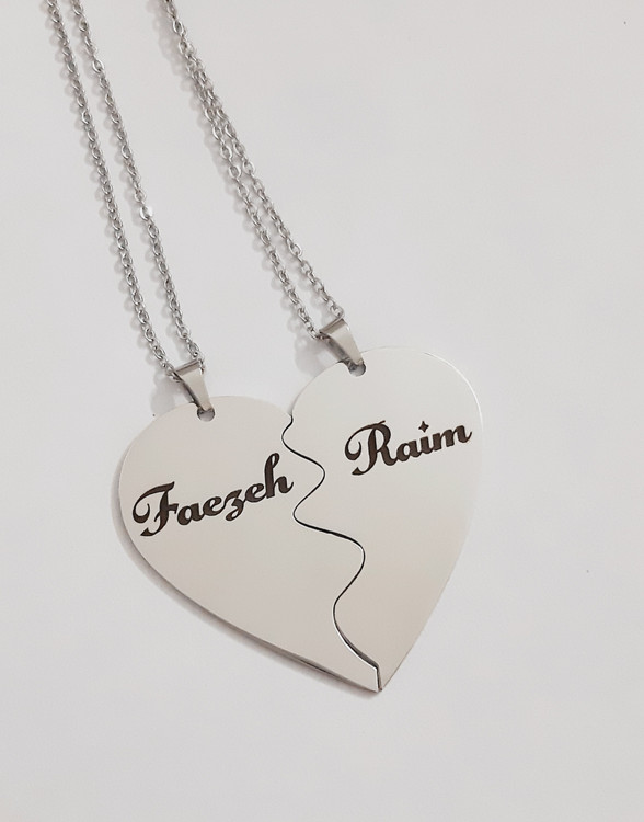- قابلیت حکاکی اسم: امکان حکاکی اسم شما و عزیزتان روی هر نیمه قلب، این گردنبند را به یک هدیه کاملاً شخصی و بهیادماندنی تبدیل میکند.