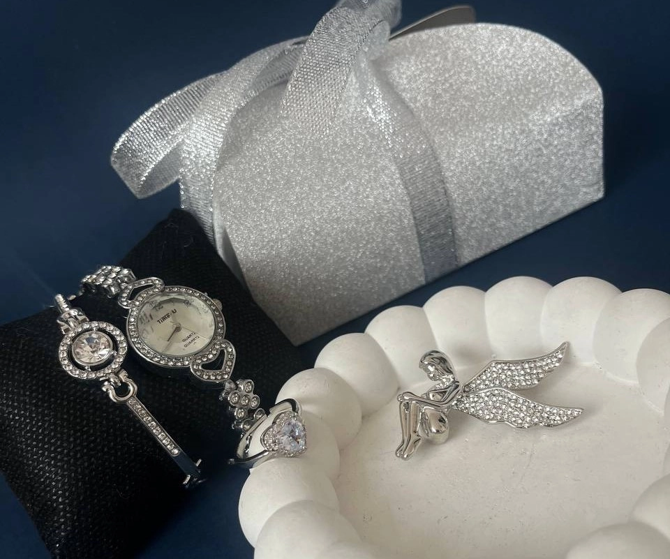 باکس عیدی جواهری قلب (شامل ساعت-دستبند-انگشتر-گلسینه)