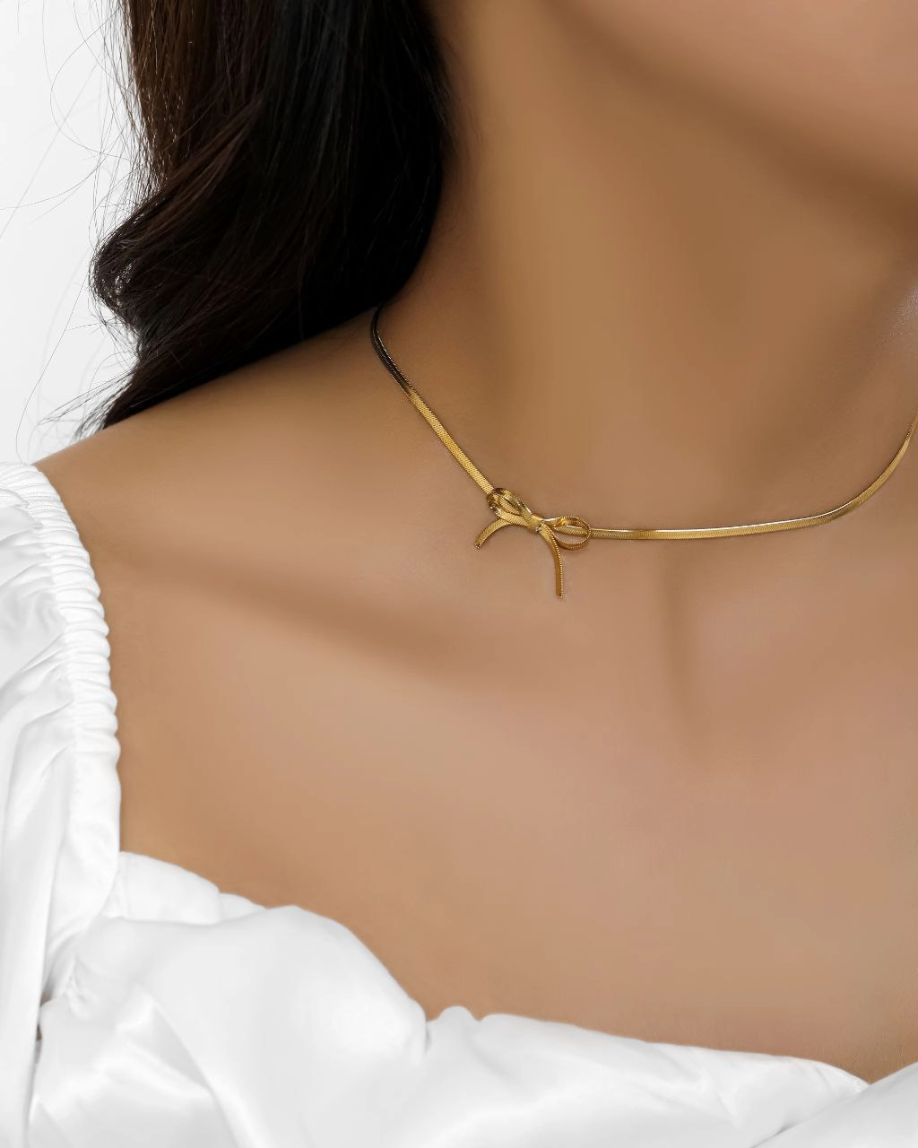 - طراحی: گردنبند با آویزی به شکل پاپیون که به زیبایی بر روی گردن مینشیند و گوشوارههای هماهنگ با طراحی پاپیونی که جلوهای زیبا به استایل او میبخشد.