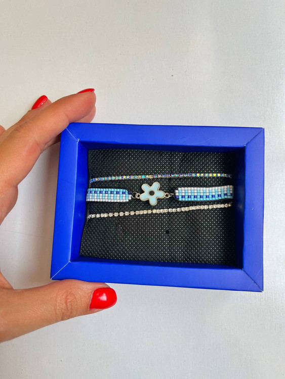 این پک شامل دستبند با پلام نقره عیار 925 و بند میوکی دستساز و دو عدد دستبند کشی حواهری