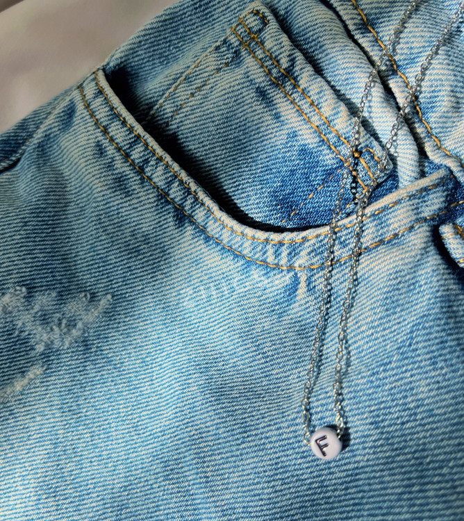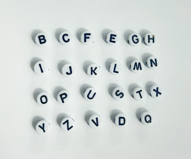مهره سفید مینیمال با حروف چاپی انگلیسی، نمادی از اسم تو یا کسی که برات مهمه.