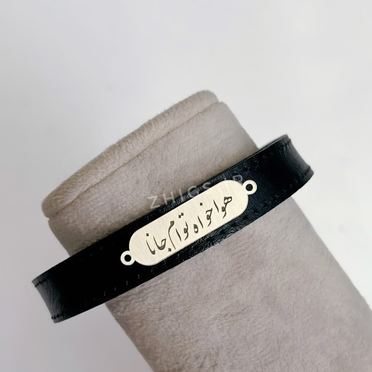 دستبند مردانه چرم و نقره – حک «هواخواه توام جانا»