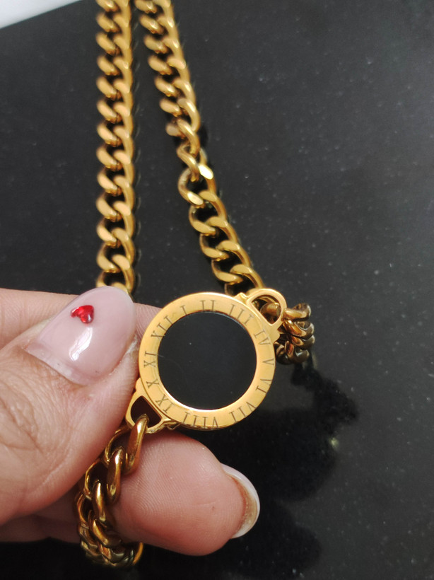 یک طرف گردنبند مشکی و طرف دیگر صدفی هست