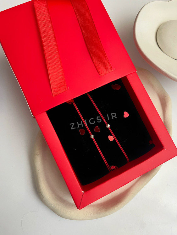این ست دستبند با نخ قرمز مقاوم و مهره طراحی شده؛ هم سادهست، هم خاص.